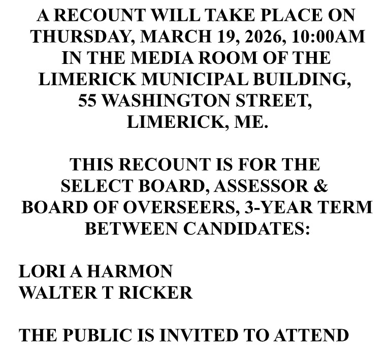 The Board is looking for a few more members to join, please email Alesha at selectboardadmin@limerickme.org if interested.